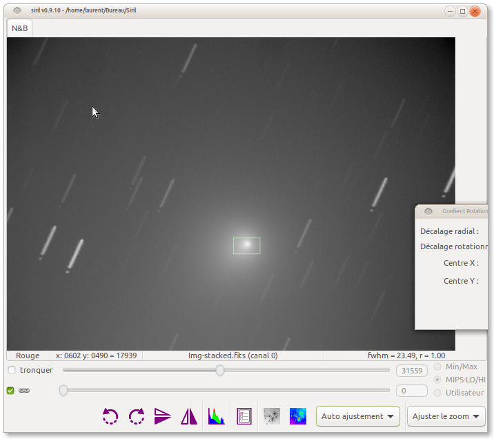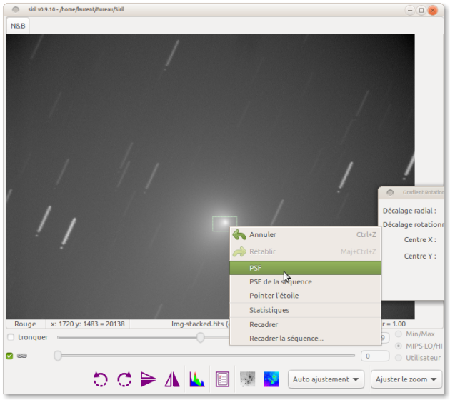 Traitement de l'imageetchoisissez Gradient rotationnel...Sélectionnez une zone autour de la comète