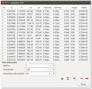 Dynamic PSF is a dynamic tool inspired by the PixInsight routine of the same name. It is used to fit unsaturated stars within the image.