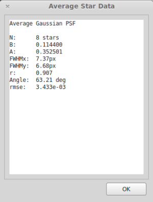 In both case you will be able to copy the result and paste it where you want. In this cased a relative magnitude is computed following −2.5×logI where I is the total intensity of the fitted star.