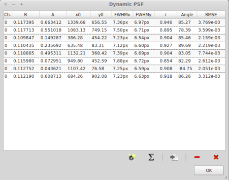 Nota The dynamic PSF window is shown and provides very valuable tools: ⚓