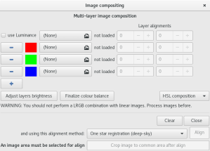 Apre gli strumenti di calibrazione RGB sull'immagine risultante. Questo modificherà l'immagine risultante in modo distruttivo per allineare tutti e tre i suoi canali.