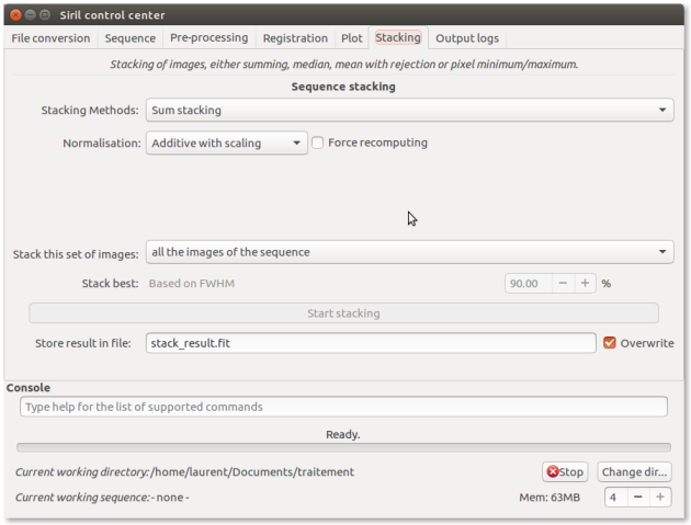 Siril utilizza internamente un'immagine a 32-bit per elaborare lo stacking. Questa viene poi salvata in un'immagine a 16-bit.