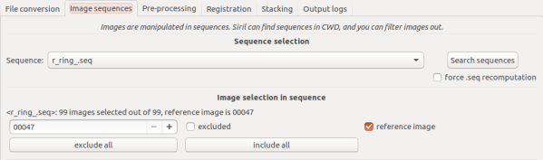 Se non impostata manualmente, la prima immagine della sequenza sarà presa come riferimento.
