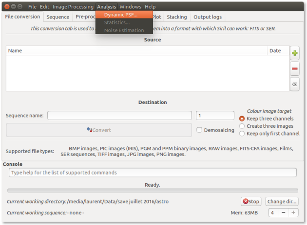 Il livello è il livello sul quale verrà effettuata la registrazione, grigio di default (impostato in siril_init())