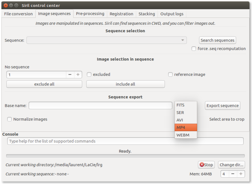 Siril può esportare sequenze nei seguenti formati: