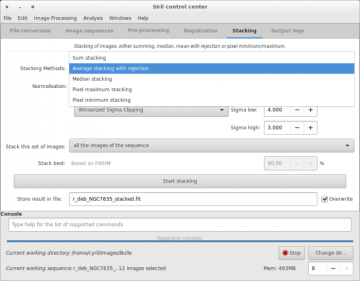 In the case of NGC7635 sequence, we first used the Winsorized Sigma Clipping algorithm in Average stacking with rejection section, in order to remove satellite tracks (σlow=4 and σhigh=3).